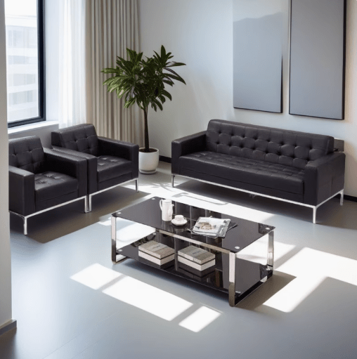 HH-A49 Modern X Base Wood and Glass Dining Table in Black